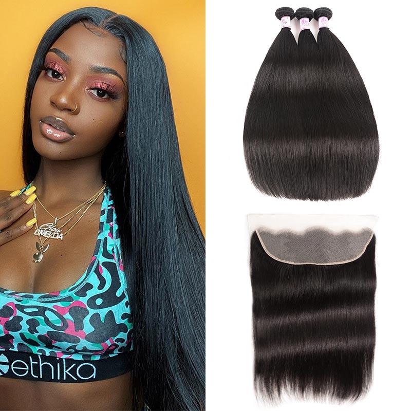 Beautyforever Straight Hair 13x4 HD Lace Frontal With 3Bundles Natural Hairline Virgin Hair