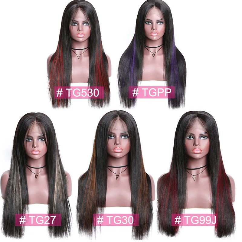 Beautyforever Straight Hair Highlights Color Real Hair Wigs Pre-plucked 13x4 Lace Frontal Wigs 150% Density