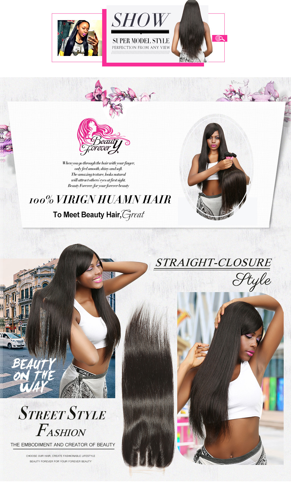 Beautyforever Straight Peruvian Virgin Human Hair 4x4 Lace Closure And 4Bundles