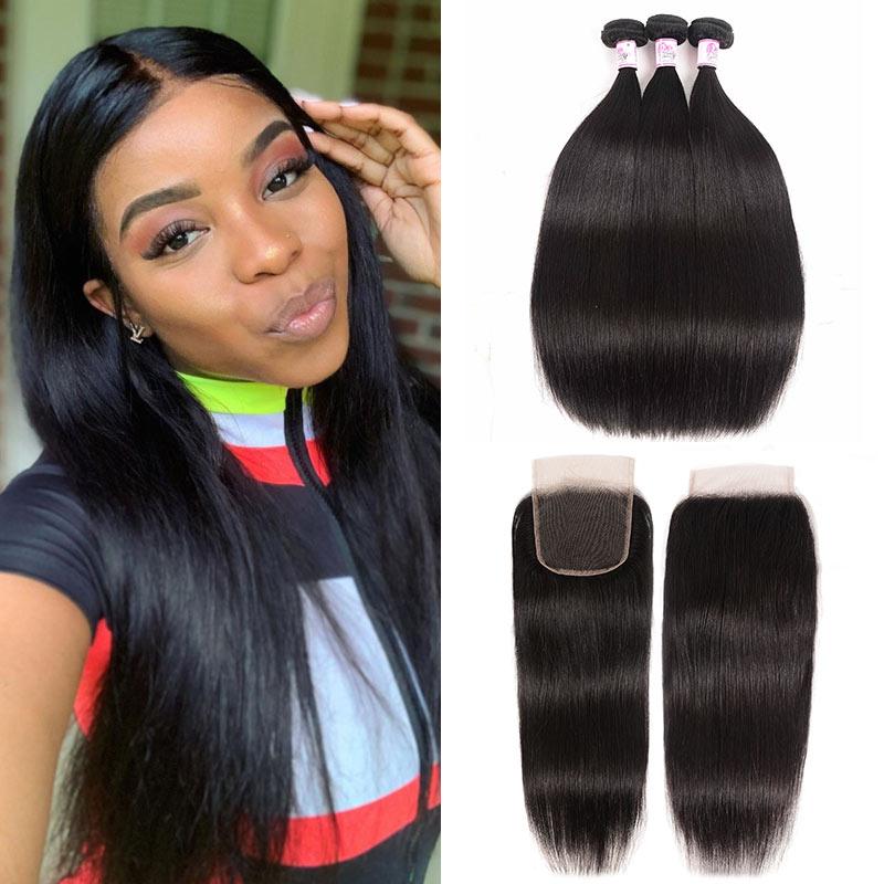 Beautyforever Straight Peruvian Virgin Human Hair 4x4 Lace Closure And 4Bundles