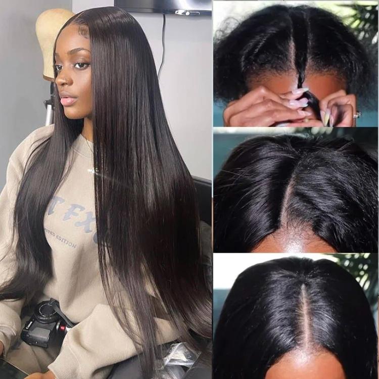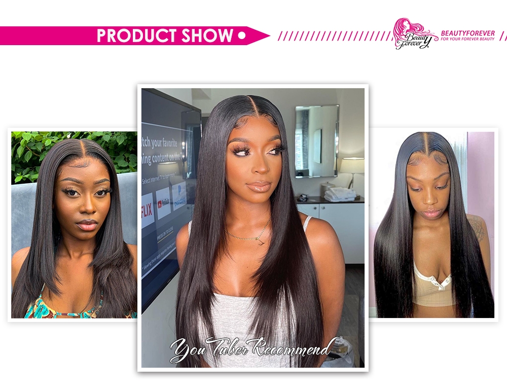 Beautyforever Straight V Part Wig Natural Color Human Hair Protective Style Wigs No Lace No Gel Glueless