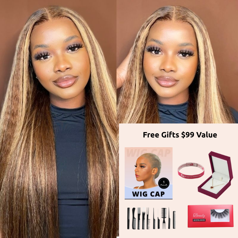Beautyforever TikTok TL412 Honey Blonde 13x4 lace Front Wigs Kinky Straight Hair For Women