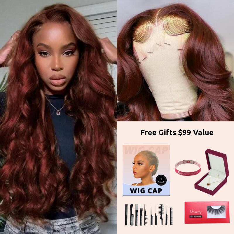 Beautyforever TikTok Wigs 13X4 33B Color Lace Front Wigs With Baby Hair Body Wave Dark Auburn Human Hair Wigs 150% Density