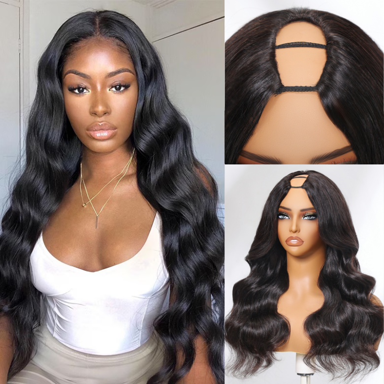 Beautyforever U Part Wig Human Hair Body Wave Hair 180% Density Natural Color With Straps Combs
