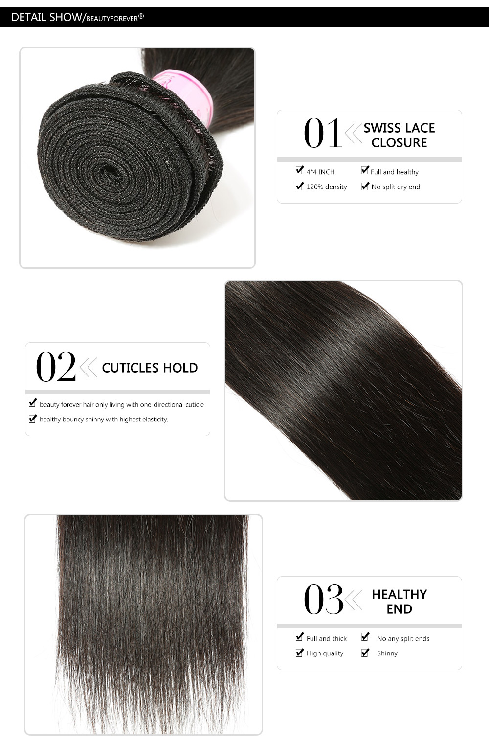 Beautyforever Virgin Straight Hair Malaysian Hair 3Bundles Weave 8"-30"