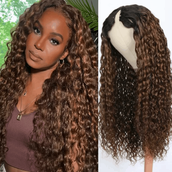 Beautyforever Water Wave Curly Hairstyle Warm Brown V Part Human Hair Wigs Soft And Comfortable