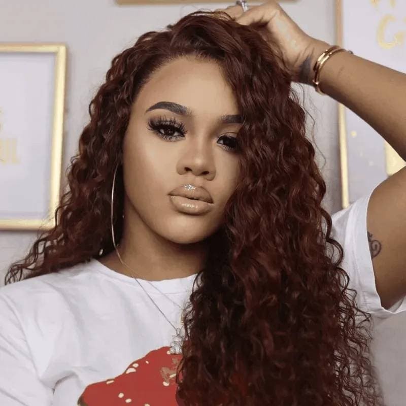 Beautyforever Water Wave Dark Auburn Color Wig 13x4 Lace Front Red Brown Human Hair Wig 150% Density Pre-plucked With Baby Hair