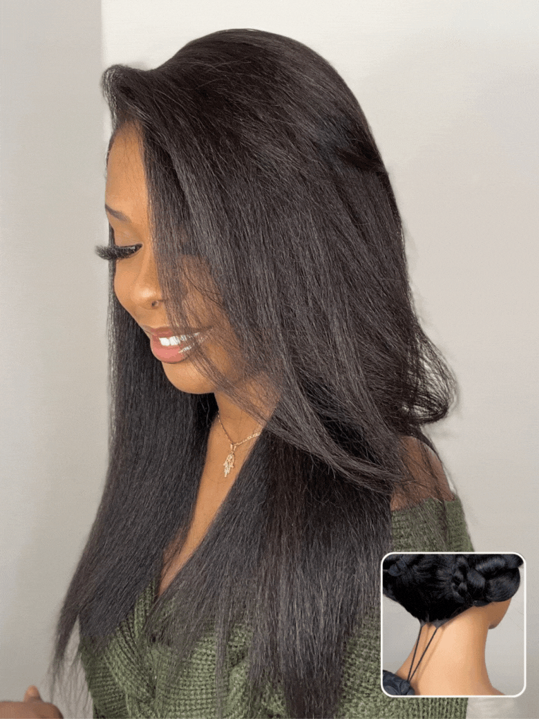 Beautyforever EasiContour V Part Yaki Straight Wig Real Scalp Put on and Go Glueless Human Hair Wig