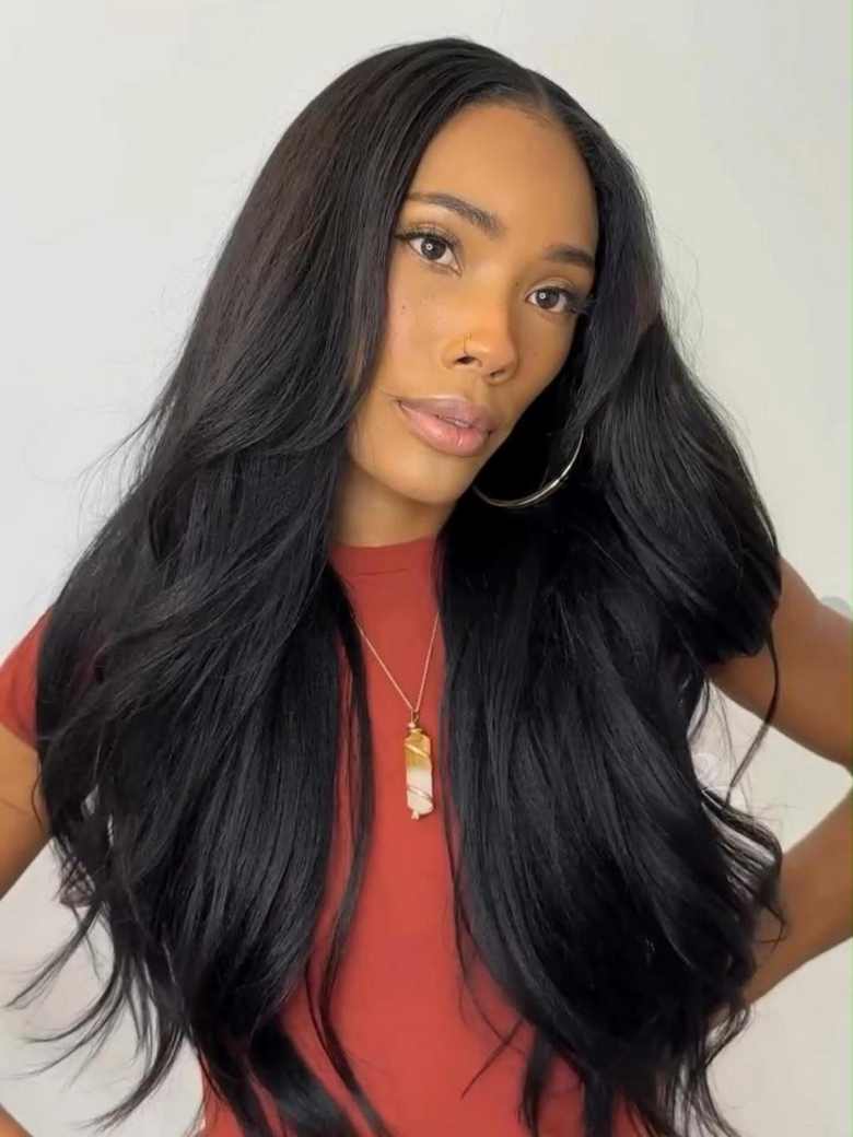 Beautyforever Yaki Straight Lifesaver V Part Wig Put on and Go Glueless Human Hair Wig 180%