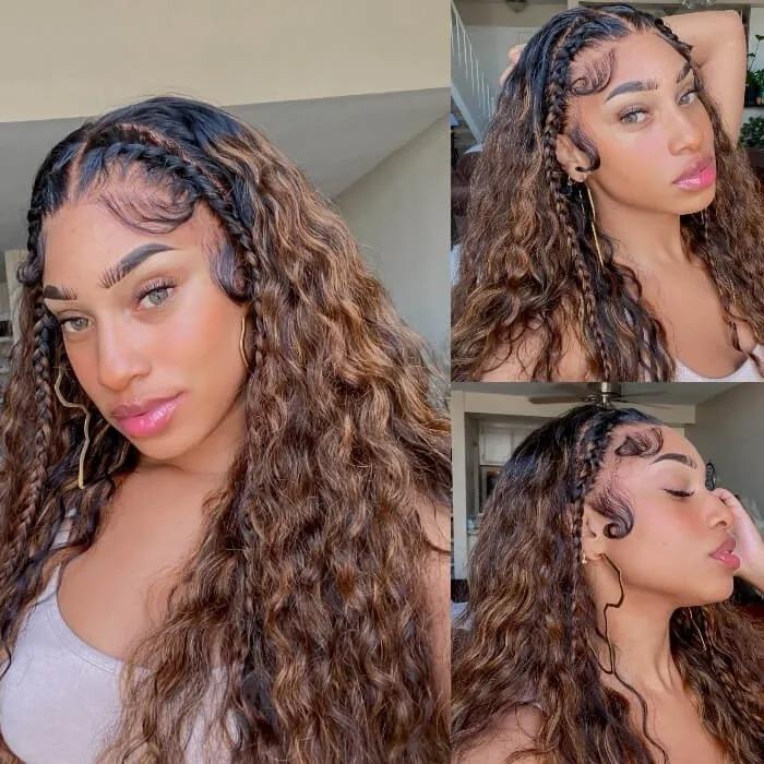 Black Friday Highlight Color Water Wave Wig Glueless V Part Wig Beginner Friendly
