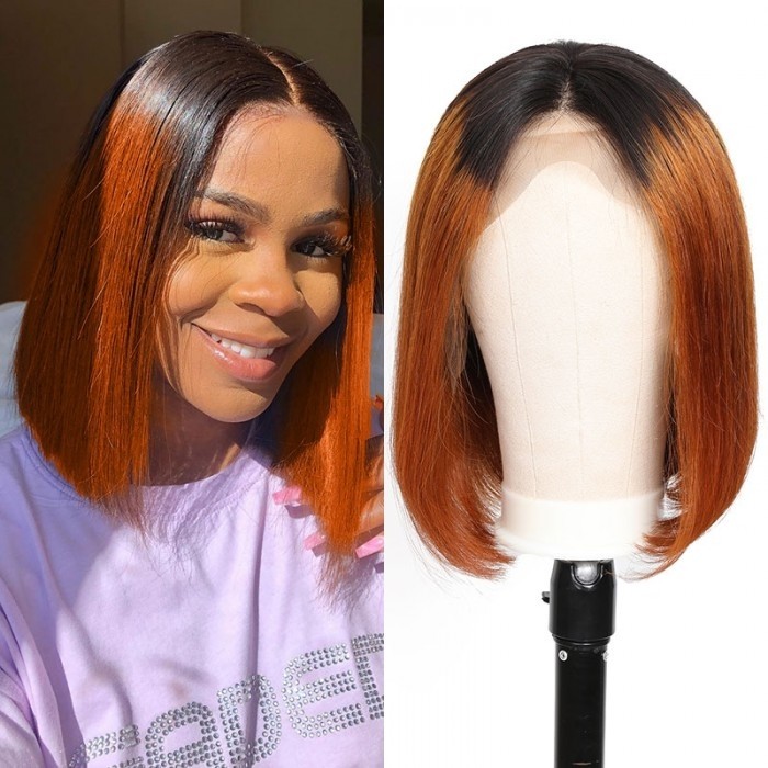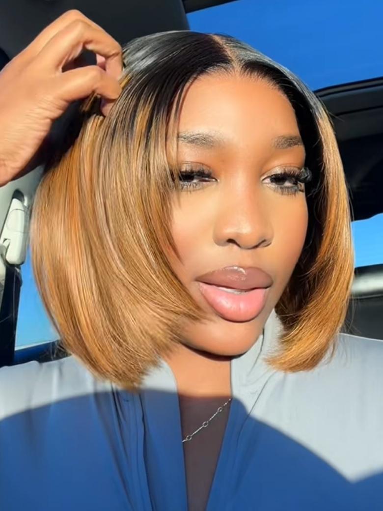 Beautyforever Bye Bye Knots 7x5 Lace Brown Blonde Piano Highlights Blunt Bob Wig with Dark Roots