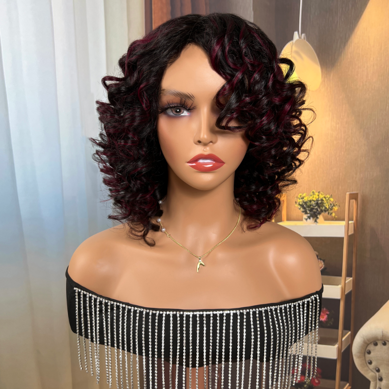 BoB 99J Highlighted Hair Short Curly Afro Glueless Human Hair Wig