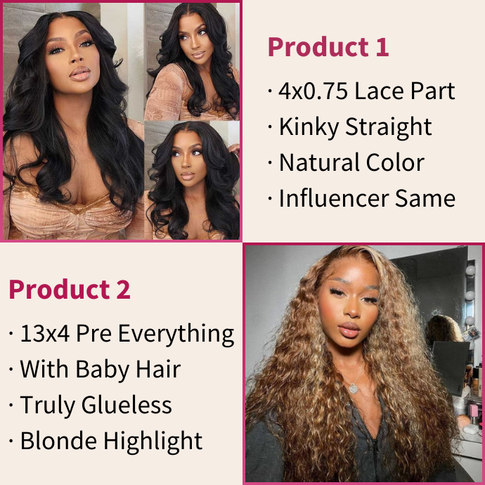 [Bogo] 13x4 Pre Everything Frontal Blonde Highlight Jerry Curly With Babyhair And 4x0.75 Lace Part Natural Color Kinky Straight