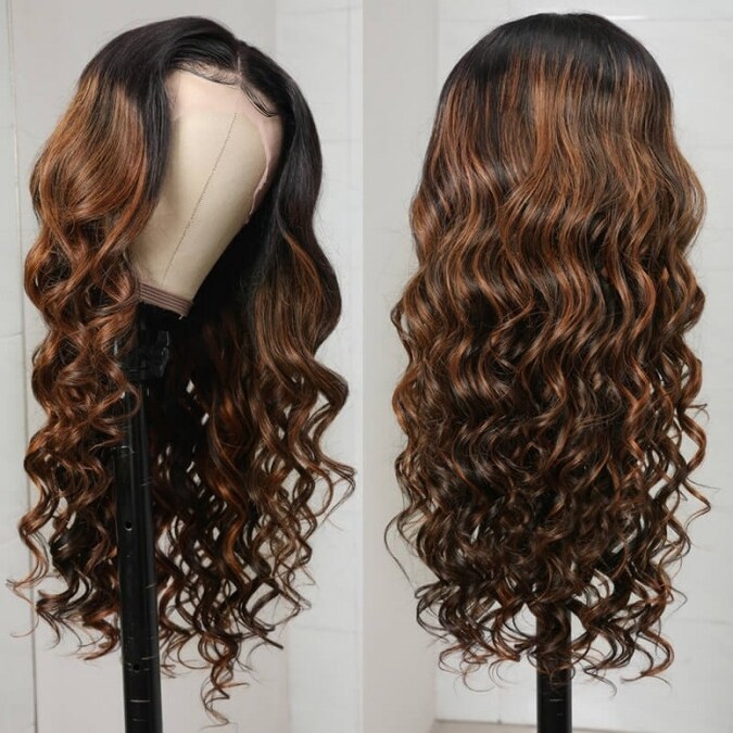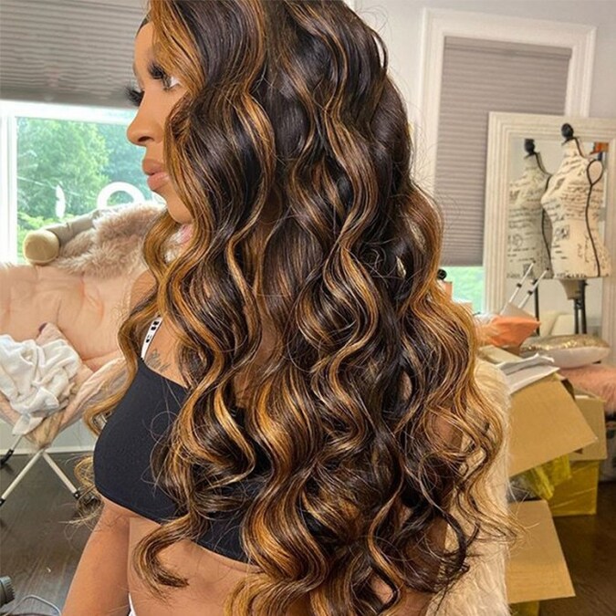 BOGO FREE 16 Inch Brown Highlight Body Wave Hair Wigs Colored Wigs