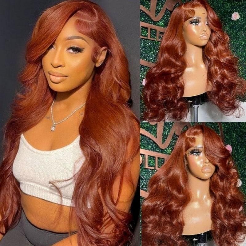 Buy 1 Get 1 Free| Body Wave Copper Brown Wig 13x4 Lace Front Wig Human Hair Wigs Pre-plucked With Babyhair