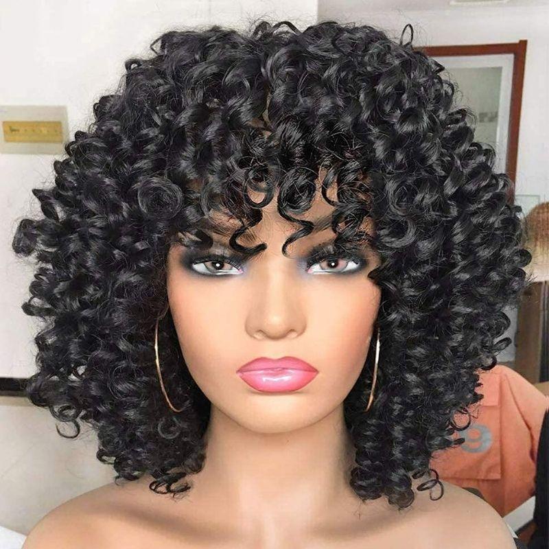 Buy 1 Get 1 Free| Glueless Breahtable Cap Wig Short Black and Dark Brown Bouncy Curl Pix Cut Wigs with Bang