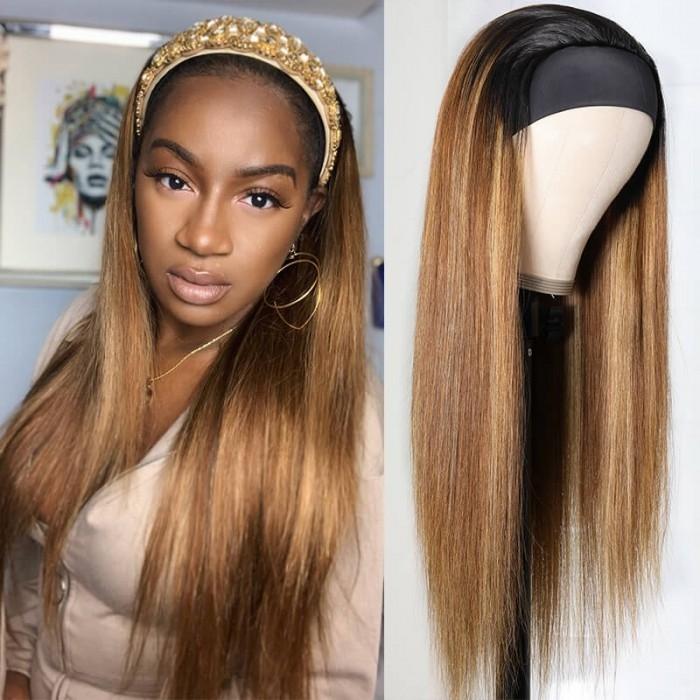 Cyber Monday $19.99 1BTL412 Headband Wigs Straight Burgundy Color Human Hair Wigs
