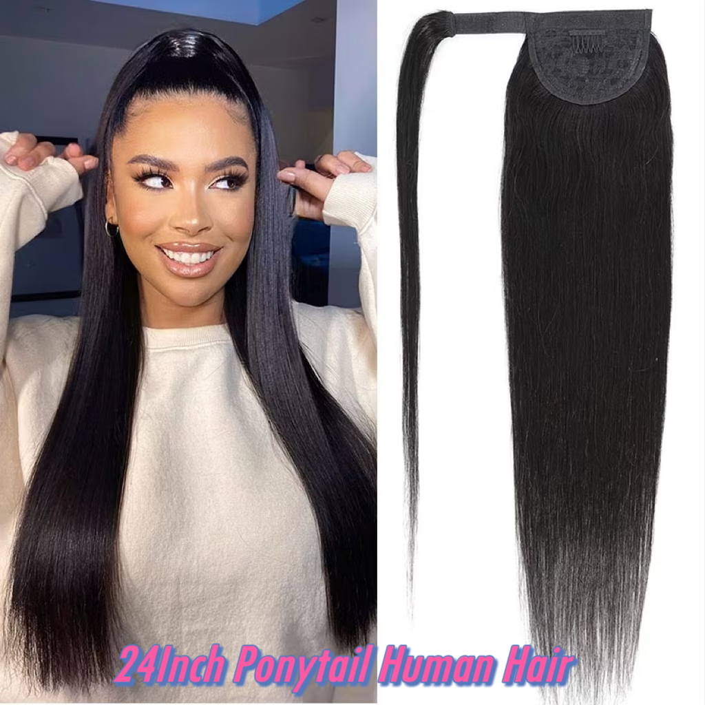 Flash | 24'' Natural Long Straight Wrap Around High Sleek Ponytail With Natural Hair Clip WhatsApp Sale