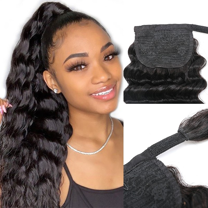 Flash deal Deep Wave Hair Ponytail with Clip-in 100 Human Hair