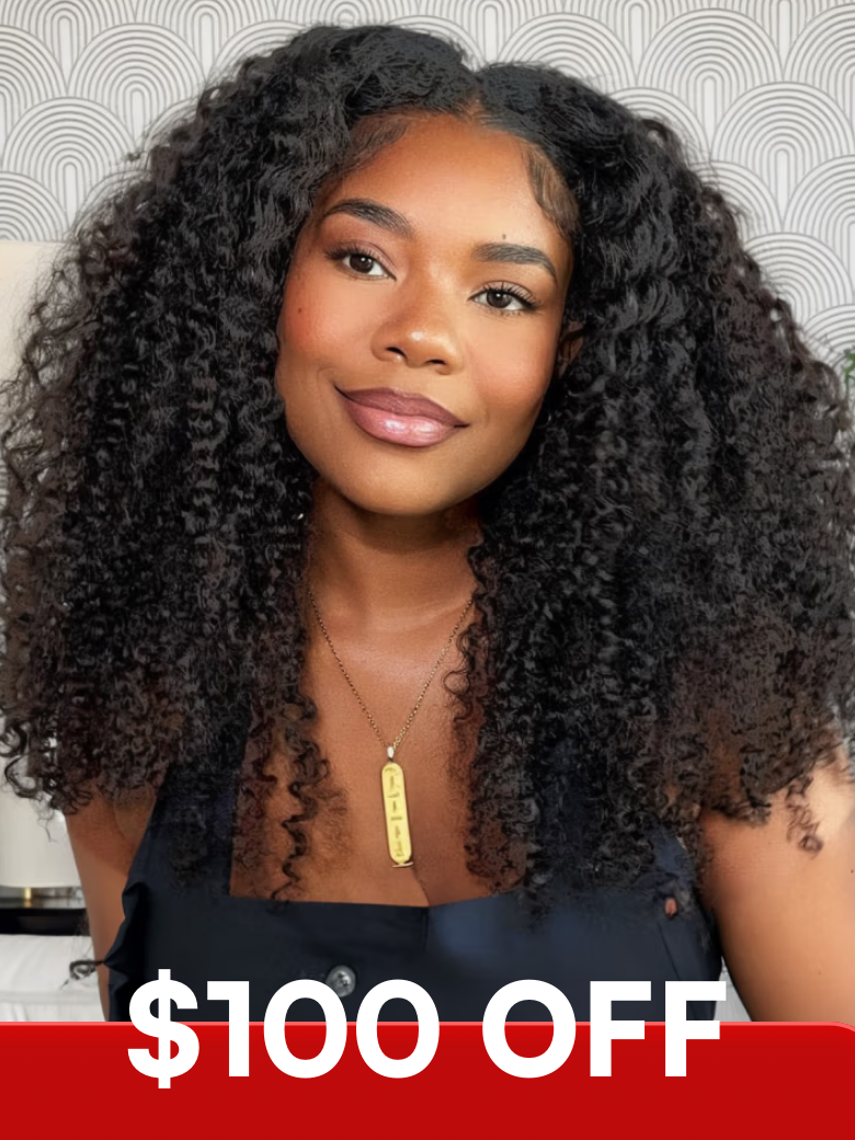$100off Flash Sale| Natural Black Kinky Curly 4X0.75 Lace Part Wig