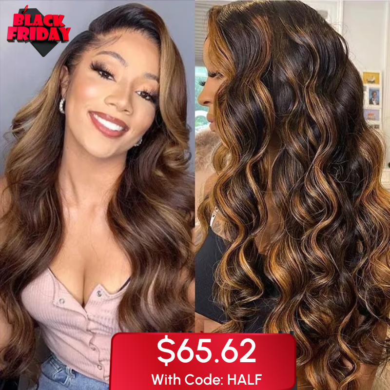 HALF PRICE| 13X4 Transparent Lace Frontal Honey Blond Highlights Body Wave Pre-pluck Baby Hair Wigs Whatsapp Sale