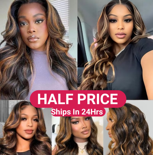 Half Price | Balayage Brown Highlight 3D Body Wave U Part Wig And 7x5 Bye Bye Knots Wig Put on and Go Glueless Lace Wigs Member Exclusive