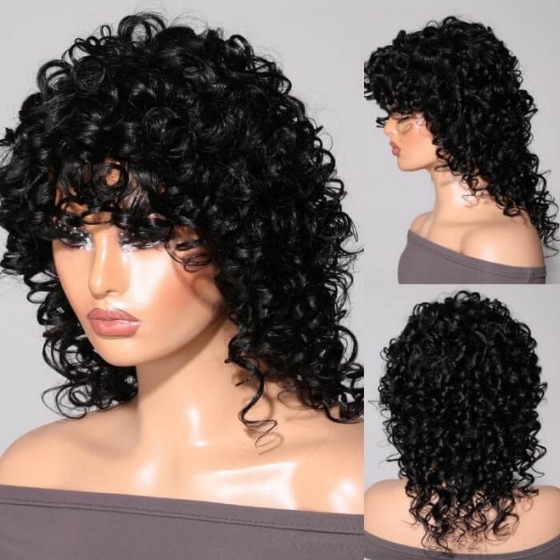 【Low To $39】Glueless Wolf Cut Hair Piano Brown Highlight Short Curly Bob Wigs With Bangs Member Sale