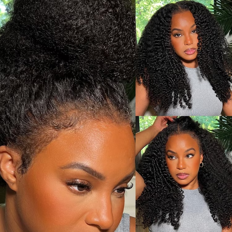 Low To $57=Natural Black Kinky Curly Lace Wig With 4C Edges Baby Hair Member Exclusive