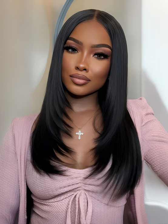Beautyforever Pre-everything Put on and Go Glueless 13x4 Lace Frontal Layered Straight Face Framing Human Hair Wigs