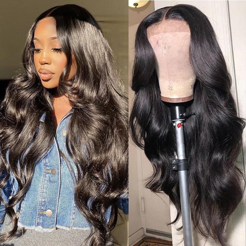 【Low To $87】Transparent Lace Natural Black Body Wave Lace Wig