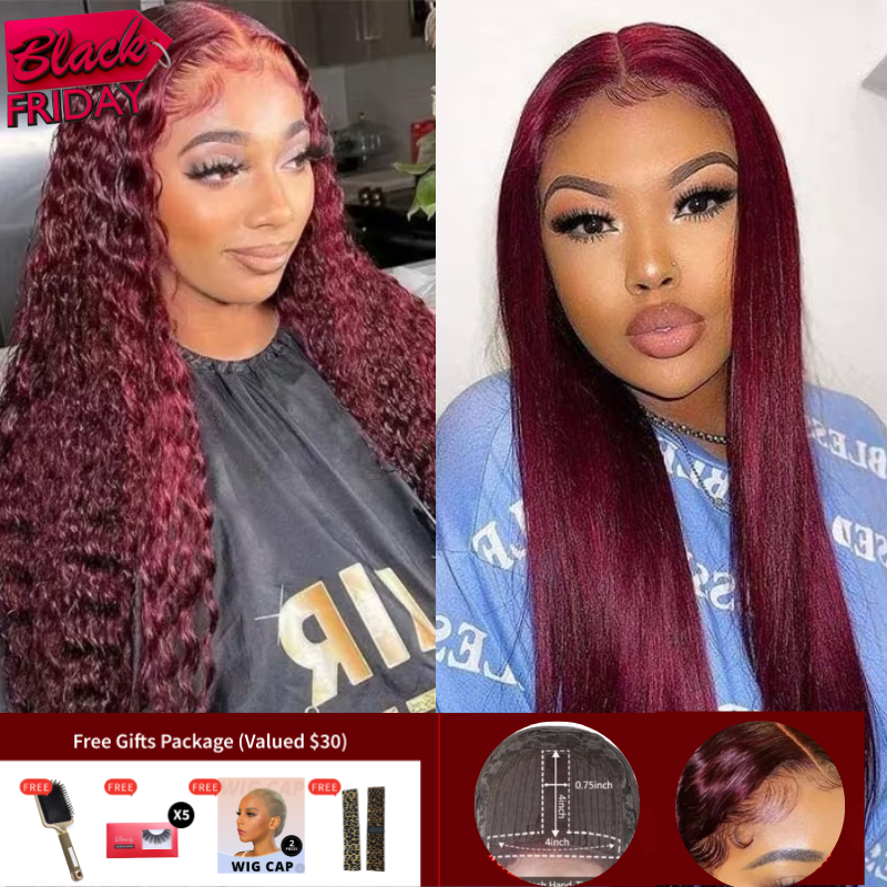 [Low To $44] Transparent Lace Dark Burgundy Jerry Curly and Straight Lace Wig Whatsapp Sale