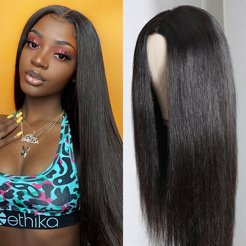 Flash Deal Medium Part Fake Scalp Straight Human Hair Wig