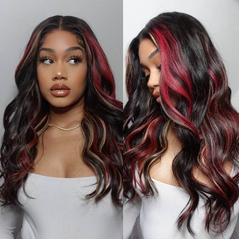 Multi Color Highlights Loose Wave 13x4 Lace Front Blonde Wig