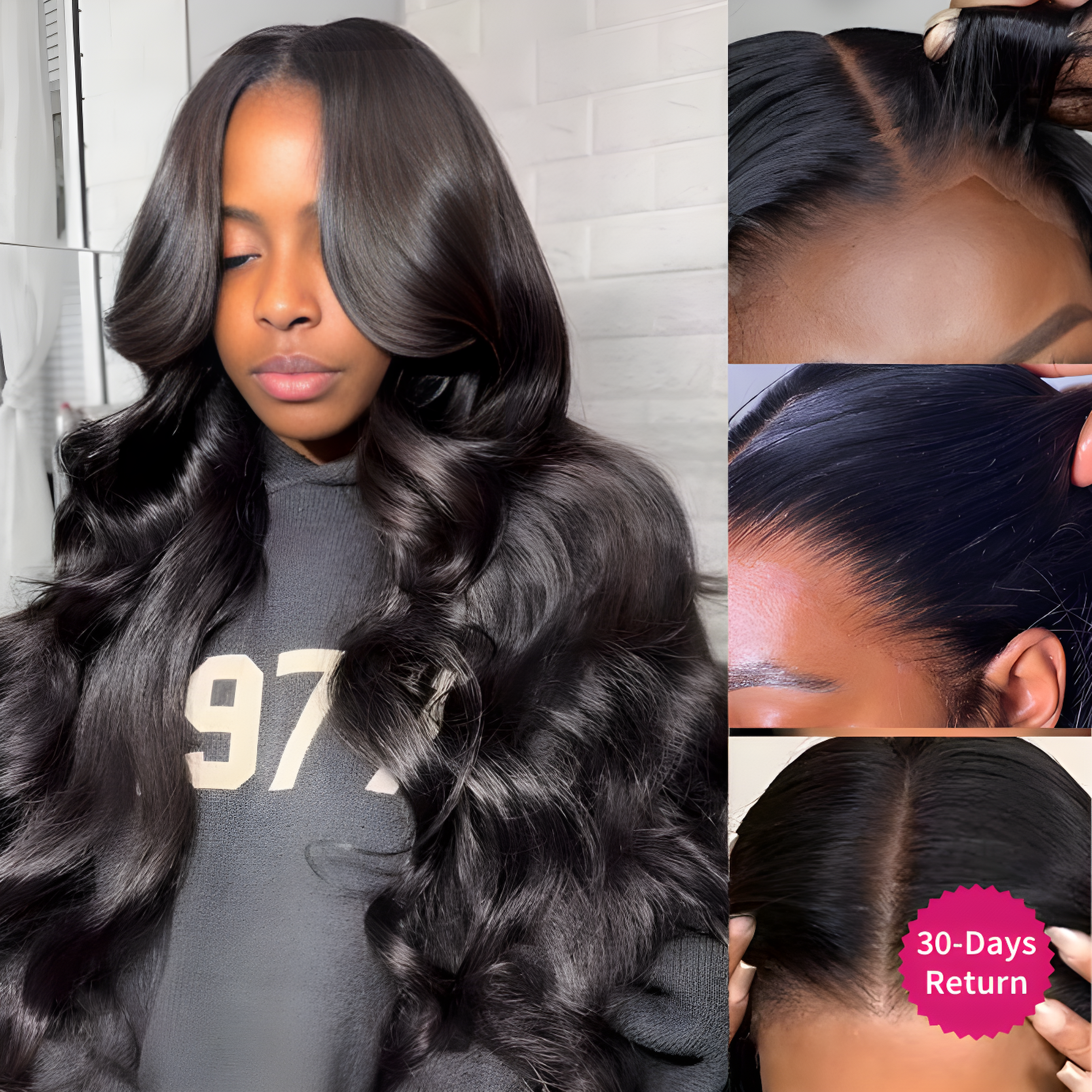 Put On And Go 6x4.75 Pre Cut Glueless Lace Wig Natural Color Body Wave Wigs
