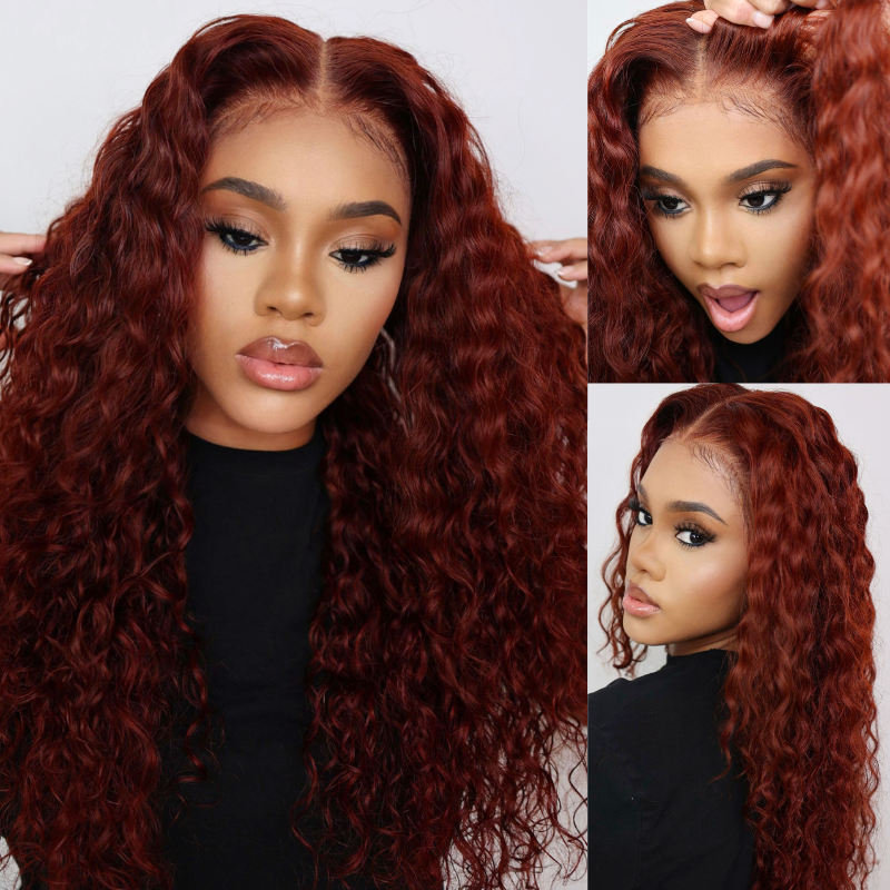 Reddish Brown 33B Kinky Curly And Ocean Water Wave 13X4 Lace Front Wig Member Exclusive