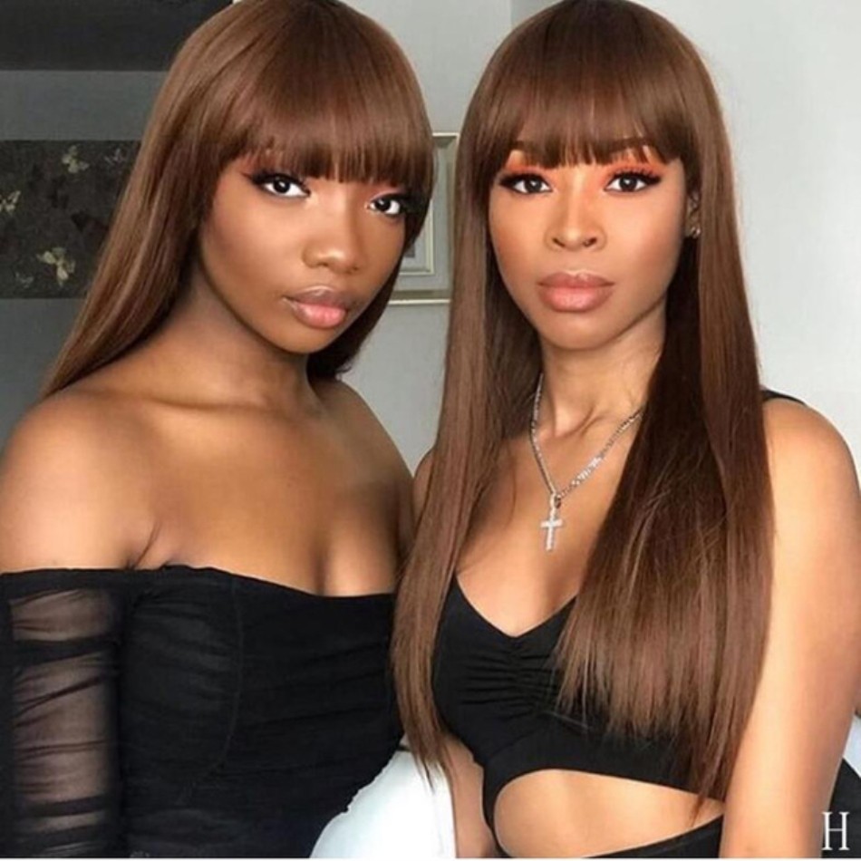Member Exclusive 18 Inch Dark Brown Hair Glueless Wigs Human Hair Colored Wigs With Bang Straight Hair Wig