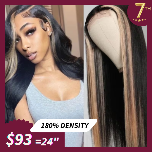 [$93=24"]TL27 Color Middle Part Lace Wigs Straight Human Hair Wigs Pre Plucked Lace Part Wig 150% Density For 7th Anniversary