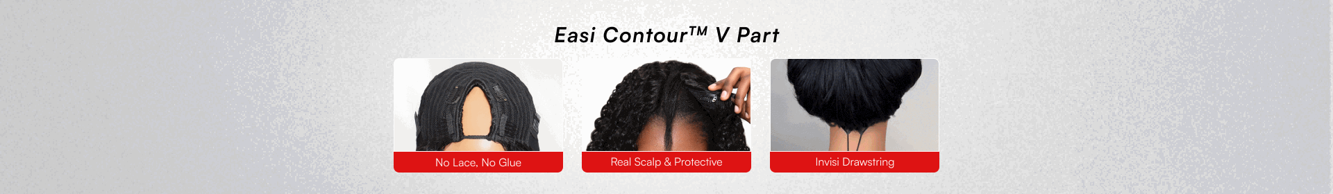 New V Part Glueless Wigs Curly with Finger Coils Ends Beginner Friendly Natural Scalp Human Hair Wig