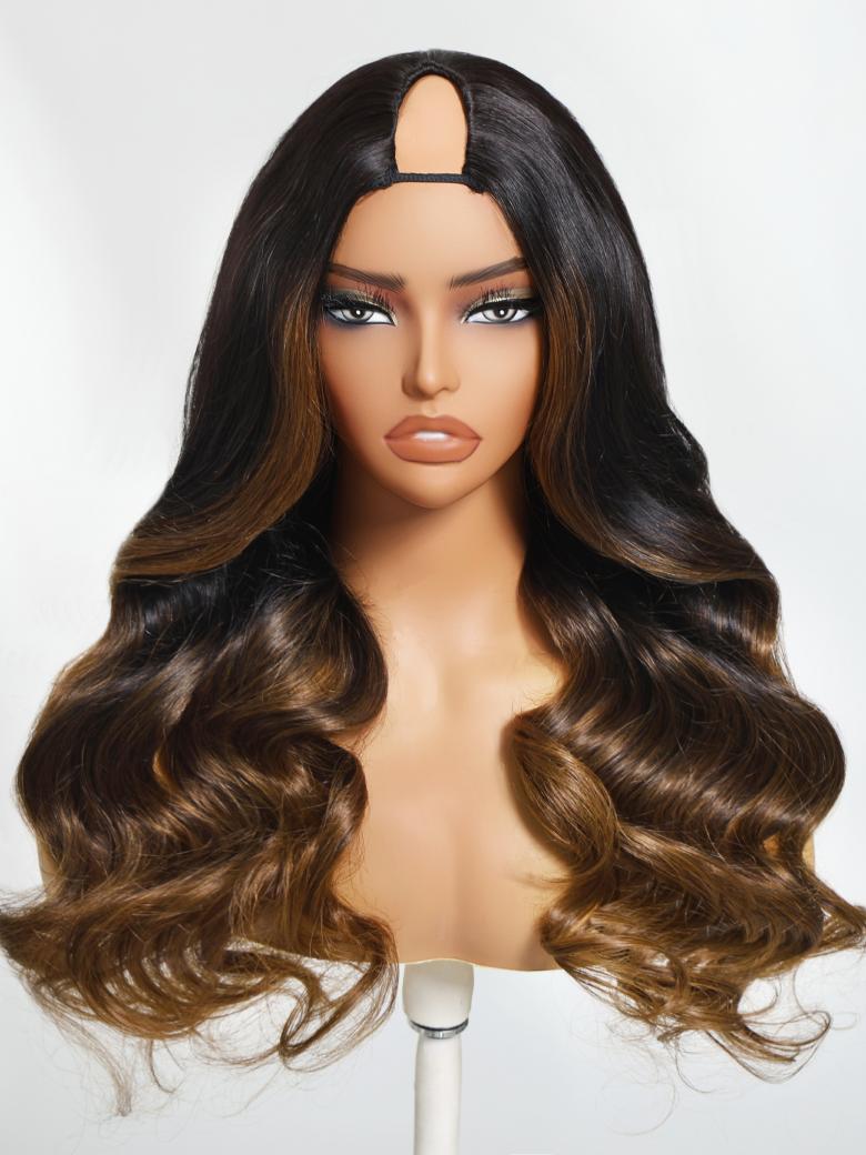 Beautyforever V-Part Chestnut Brown Ombre Body Wave Wig Real Scalp Put on and Go Glueless Human Hair Wig