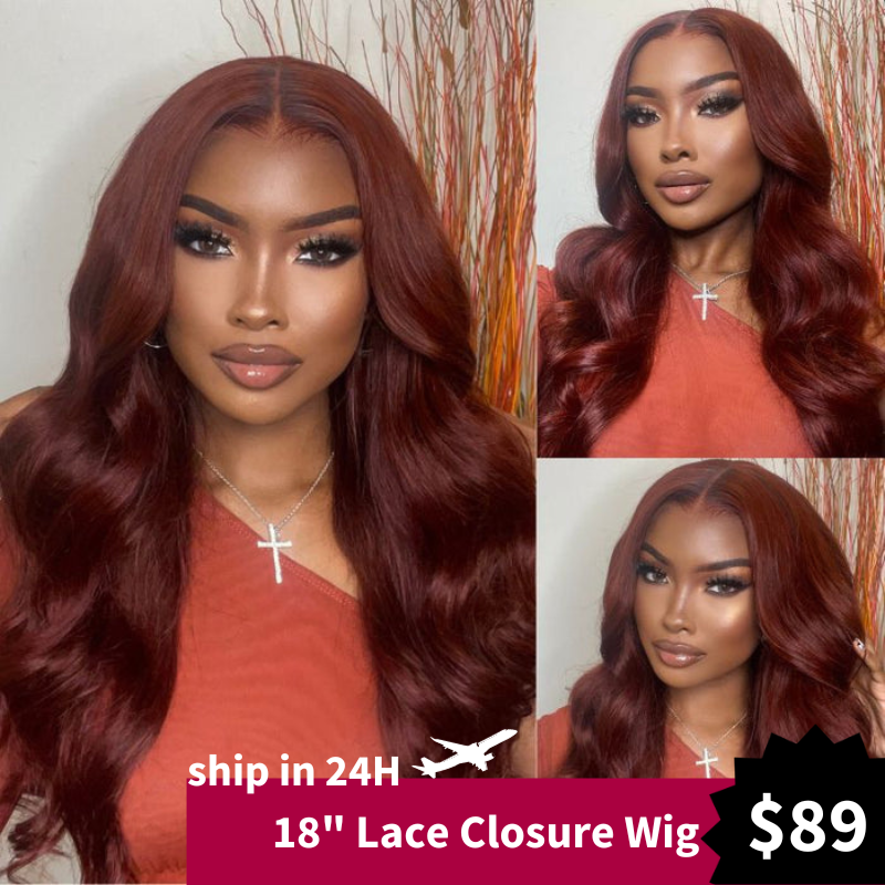 $89=18 inch| 4X4 Transparent Lace 33B Dark Auburn Body Wave Lace Closure Wig 180% Density Brand Day Exclusive